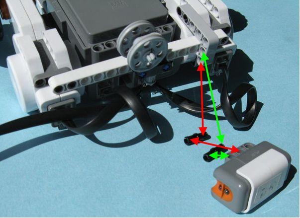 Assemble the light sensor and LEGO pieces by placing them in the positions indicated in the image below.